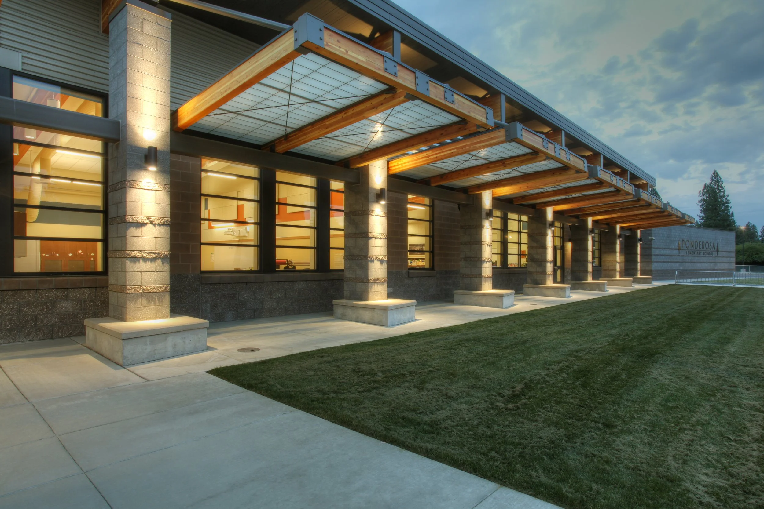 The design of Ponderosa Elementary School took advantage of the efficient layout created by MMEC for Liberty Creek Elementary, adapting the plan to fit on a smaller site in an existing neighborhood. Changes to the entry design, materials, and colors reflect the rich natural setting of the Ponderosa Neighborhood, giving the school its own identity.