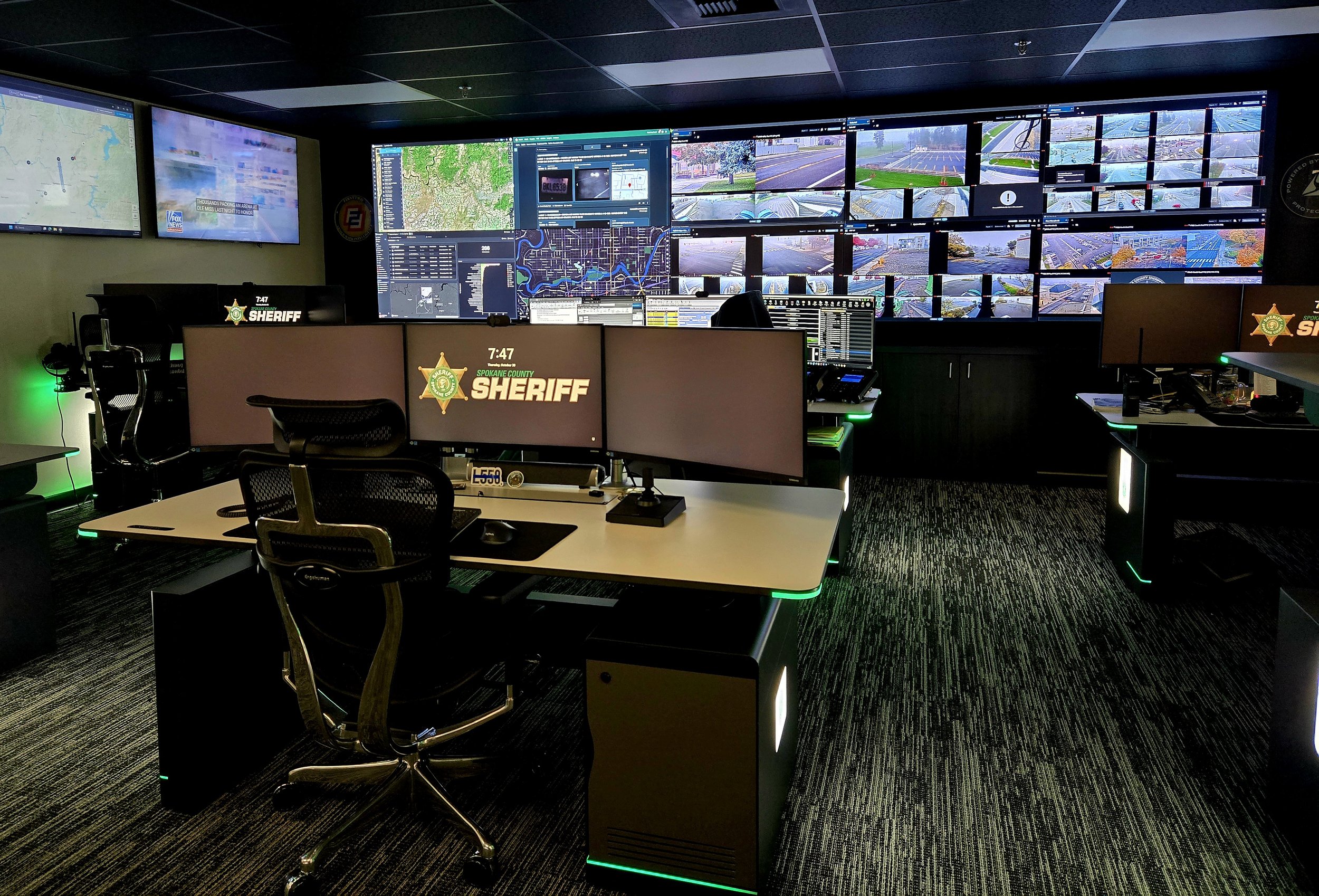 The RTCC is a cutting-edge hub where data, technology, and law enforcement expertise all converge to put real-time, actionable information in the hands of Deputies, Detectives, and other law enforcement partners. This is accomplished by leveraging new and existing technology, improving the efficiency and effectiveness of law enforcement efforts throughout Spokane County. The Spokane County Sheriff’s Office RTCC is staffed by highly trained professionals who monitor and analyze a wide array of datasources, such as surveillance cameras, drone footage, license plate readers, computer-aided dispatch systems, social media, live 911 calls, and other law enforcement information systems, all in real-time. These operators collaborate and communicate with Deputies/Detectives and other law enforcement partners in the field, increasing situational awareness and providing them with vital information to respond quickly and effectively to incidents as they unfold. The primary functions of the RTCC include incident response in real-time, crime prevention by identifying potential criminal activity, resource allocation through data and analysis and community engagement as proactive partners. The project was partially funded by Federal American Rescue Plan funding and is the first center of its kind in Washington state.